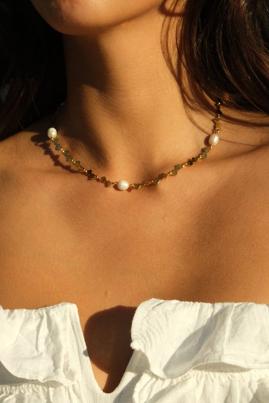 İkiz Kalp Barok İnci Kombin Kolye