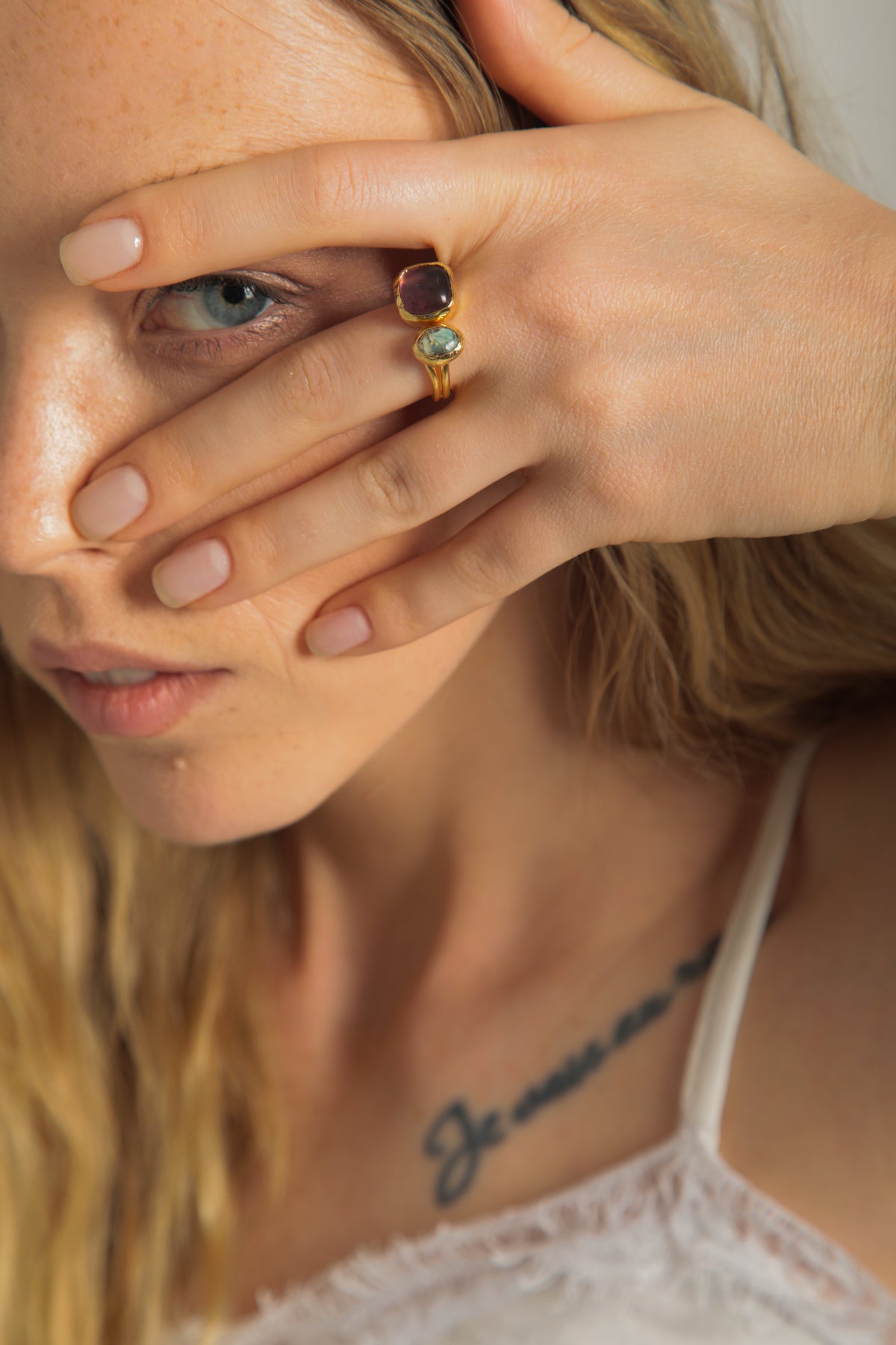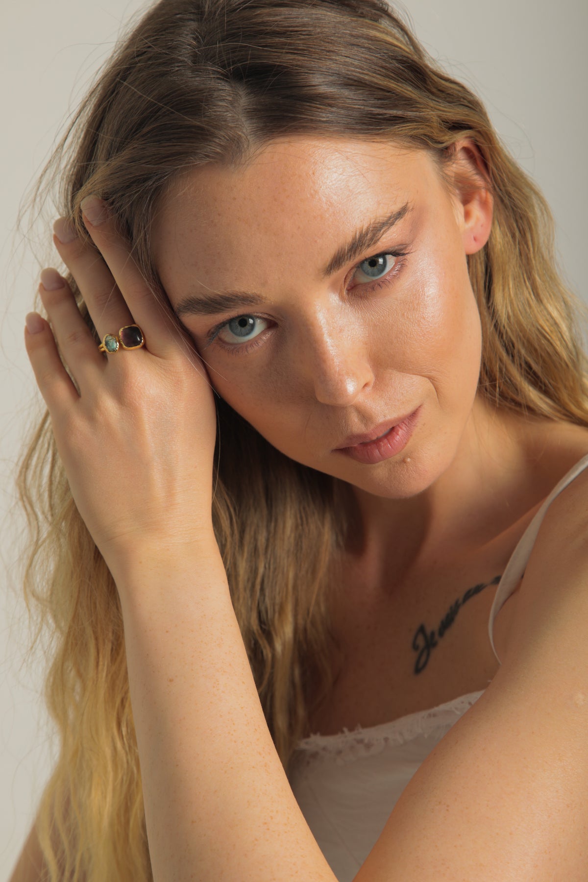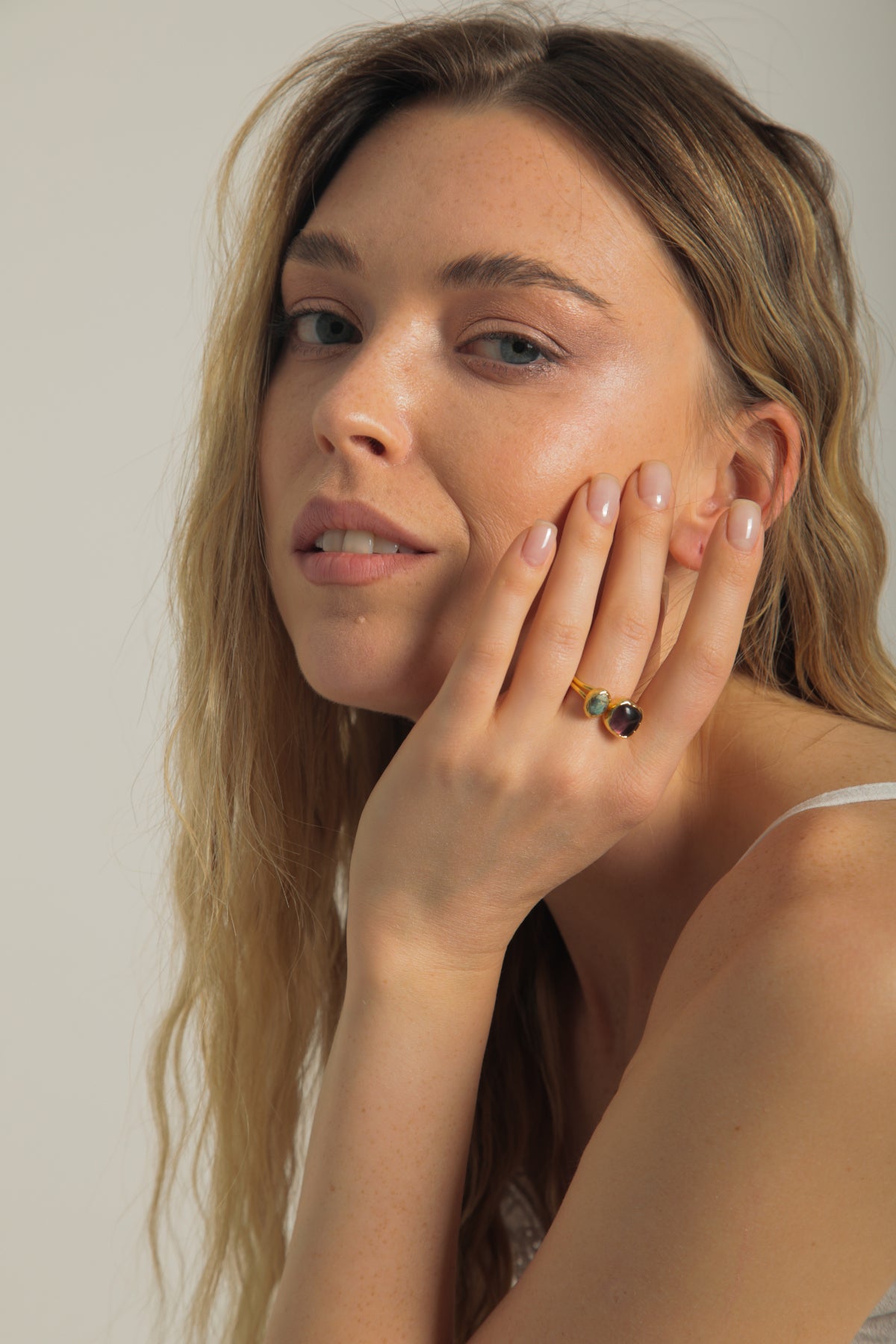 Ametist & Turkuaz Taşlı İkili Sıvama Yüzük