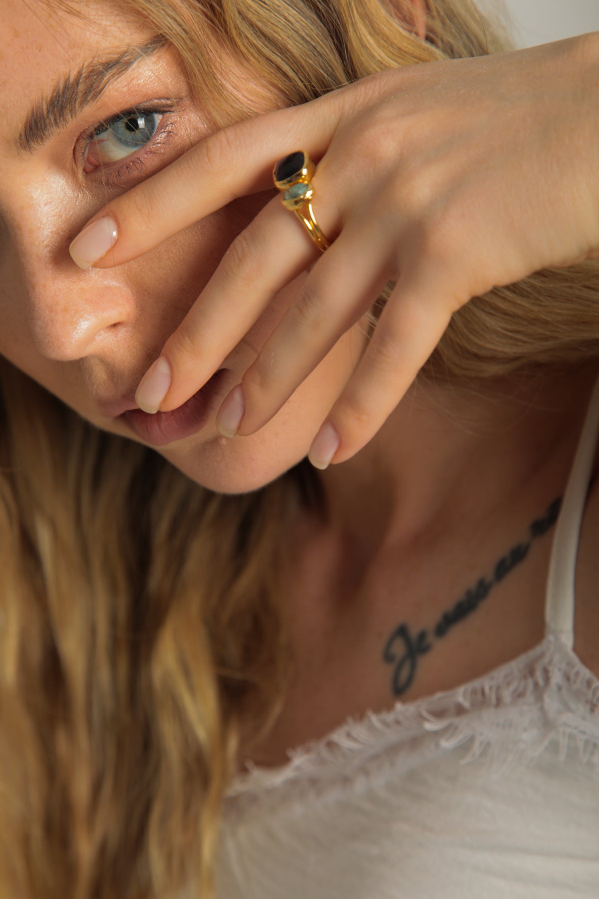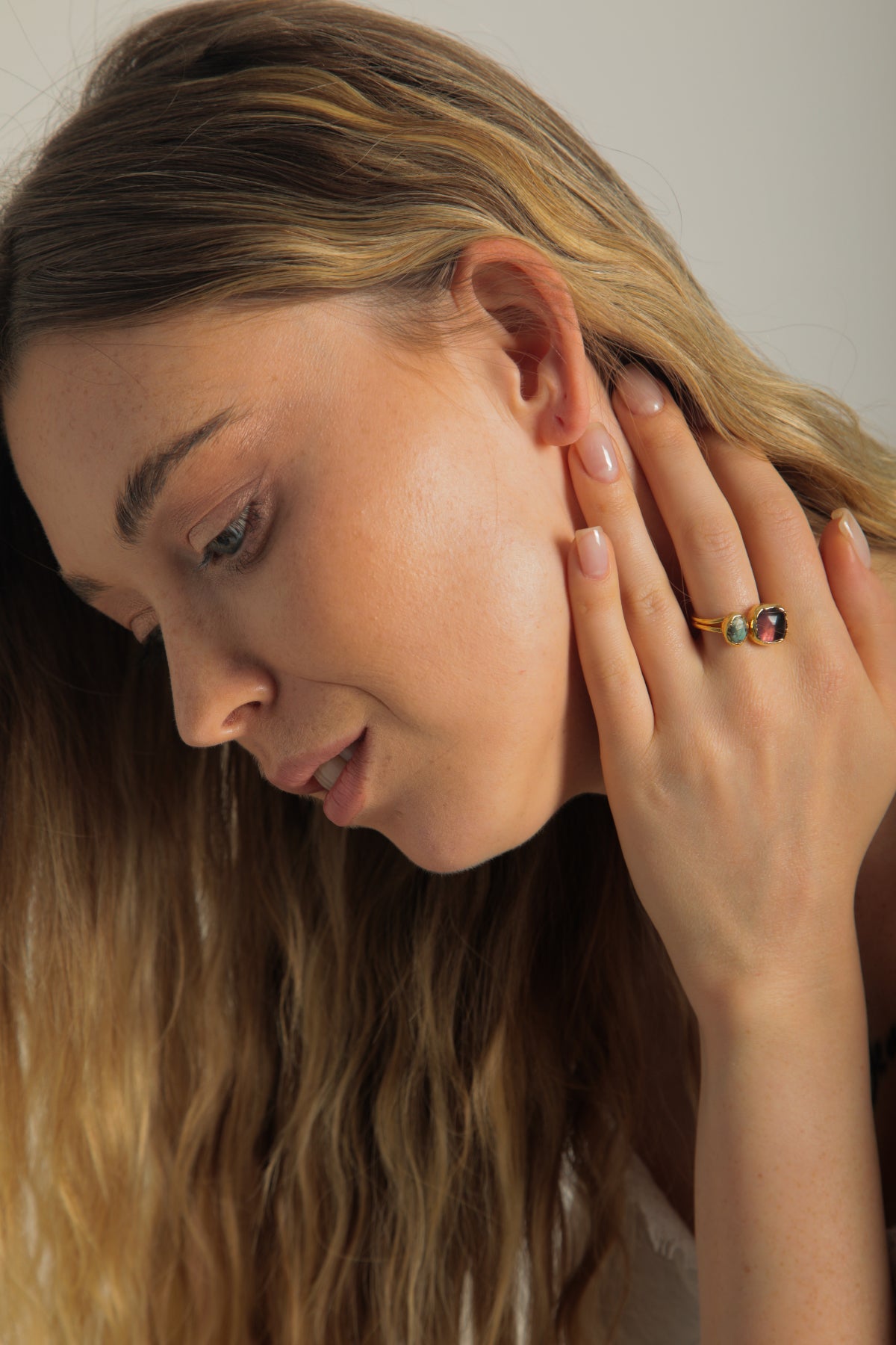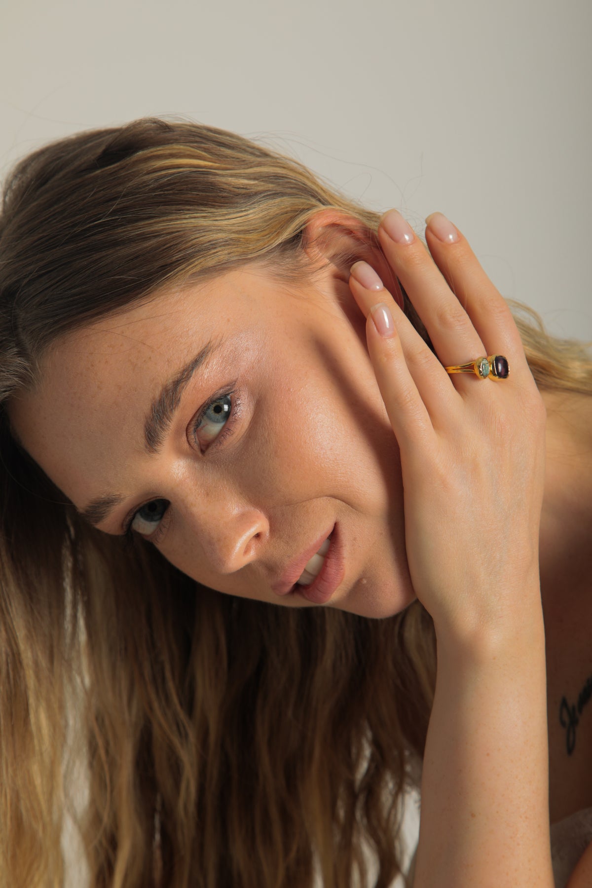 Ametist & Turkuaz Taşlı İkili Sıvama Yüzük