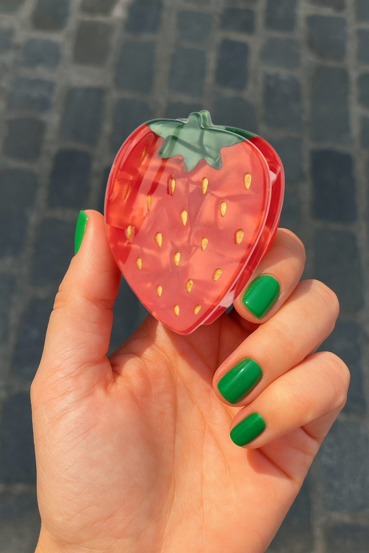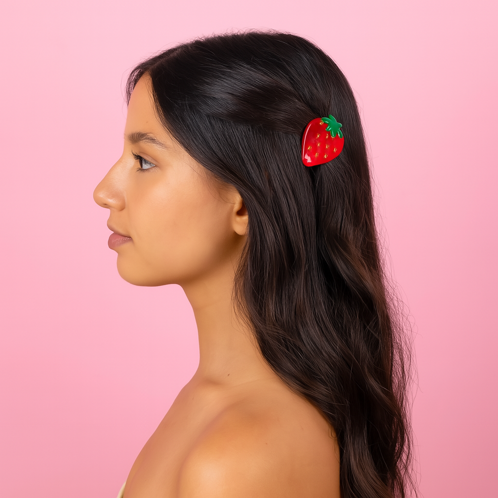 Yazın tatlı telaşına, serin rüzgarlarına ve bol renkli kombinlerine eşlik edecek çilek tokayla, saç stiline enerjik bir dokunuş kat! 🍓🌿