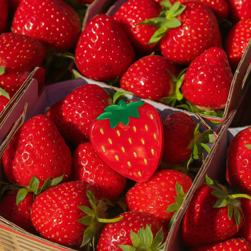 İster sabah pazarı gezisinde retro bir görünüm tamamlayıcısı, ister piknikte şapka altından çıkan renkli bir dokunuş olsun – bu minik çilek saç aksesuarı tüm bakışları üzerinde toplayacak!