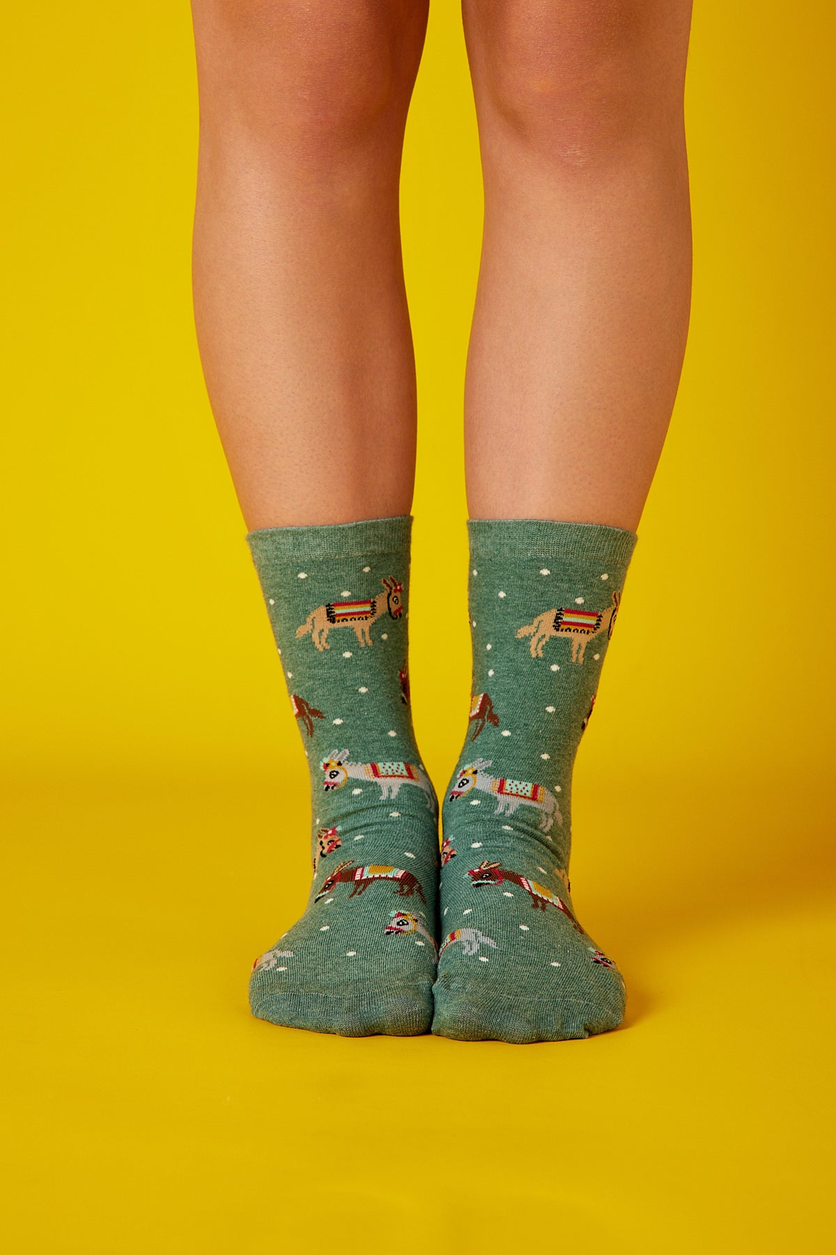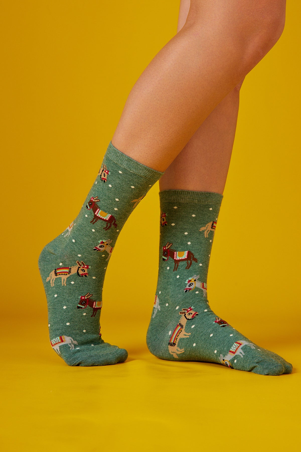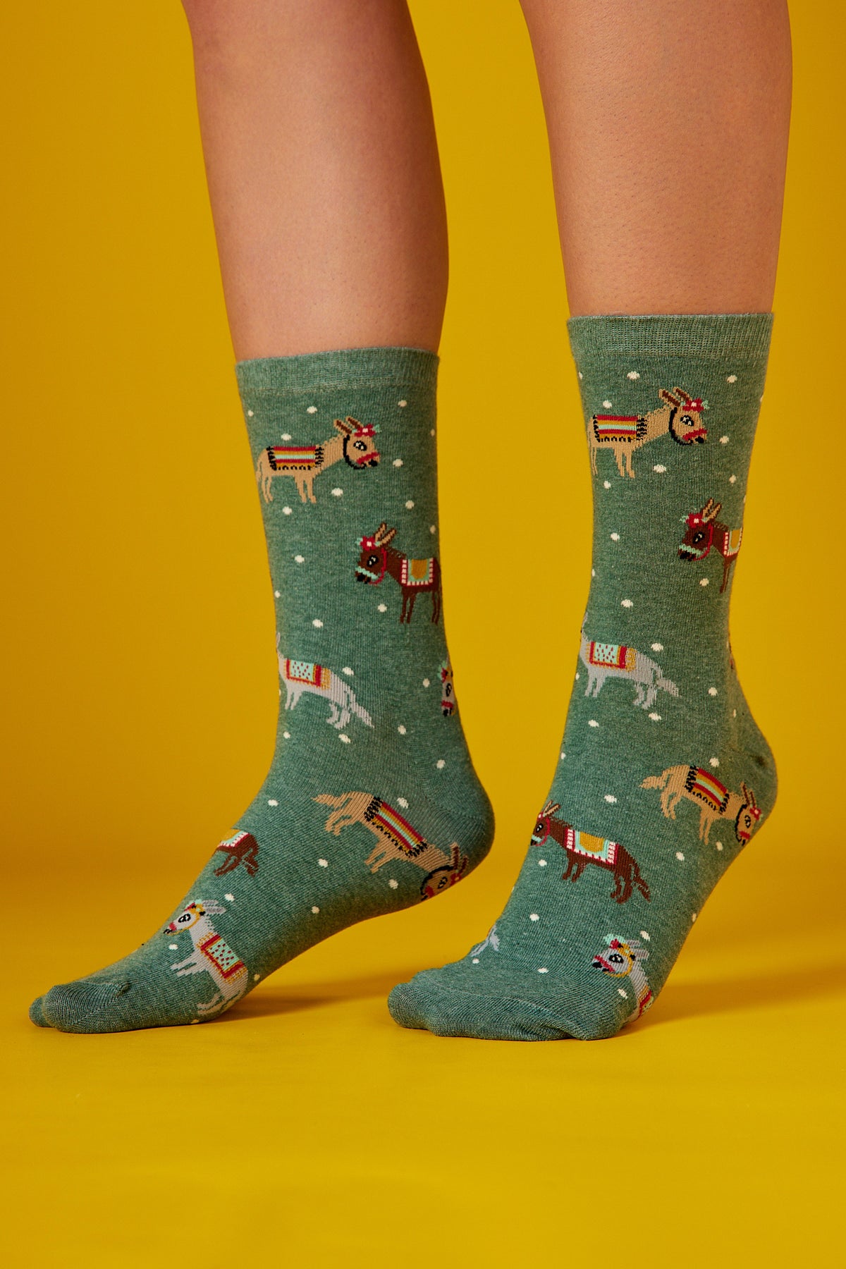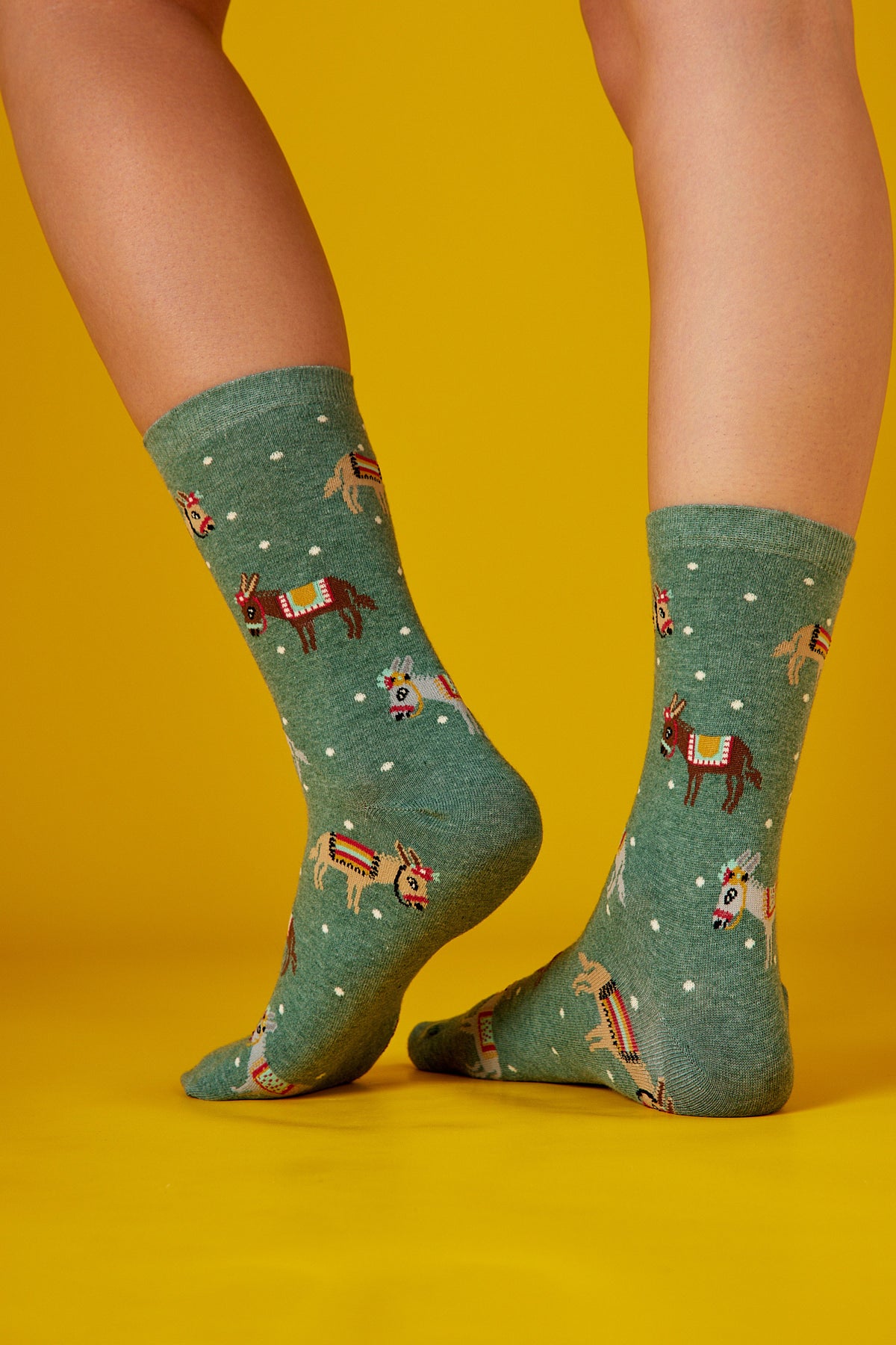 Doğa İle Bütünleşen Tasarım: Donkeys Yeşil Fon Desenli Renkli Çoraplar doğanın eğlenceli ve mizahi yansımalarını taşıyan özel bir tasarıma sahiptir.