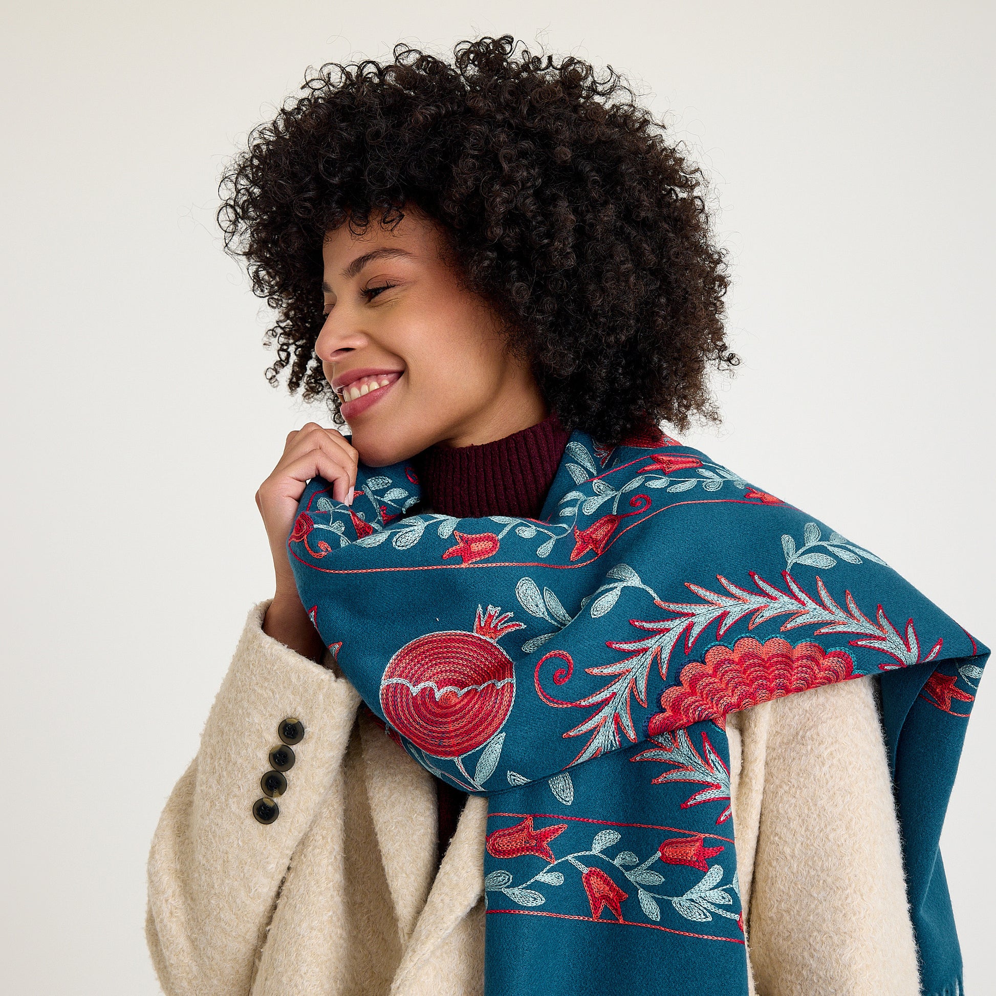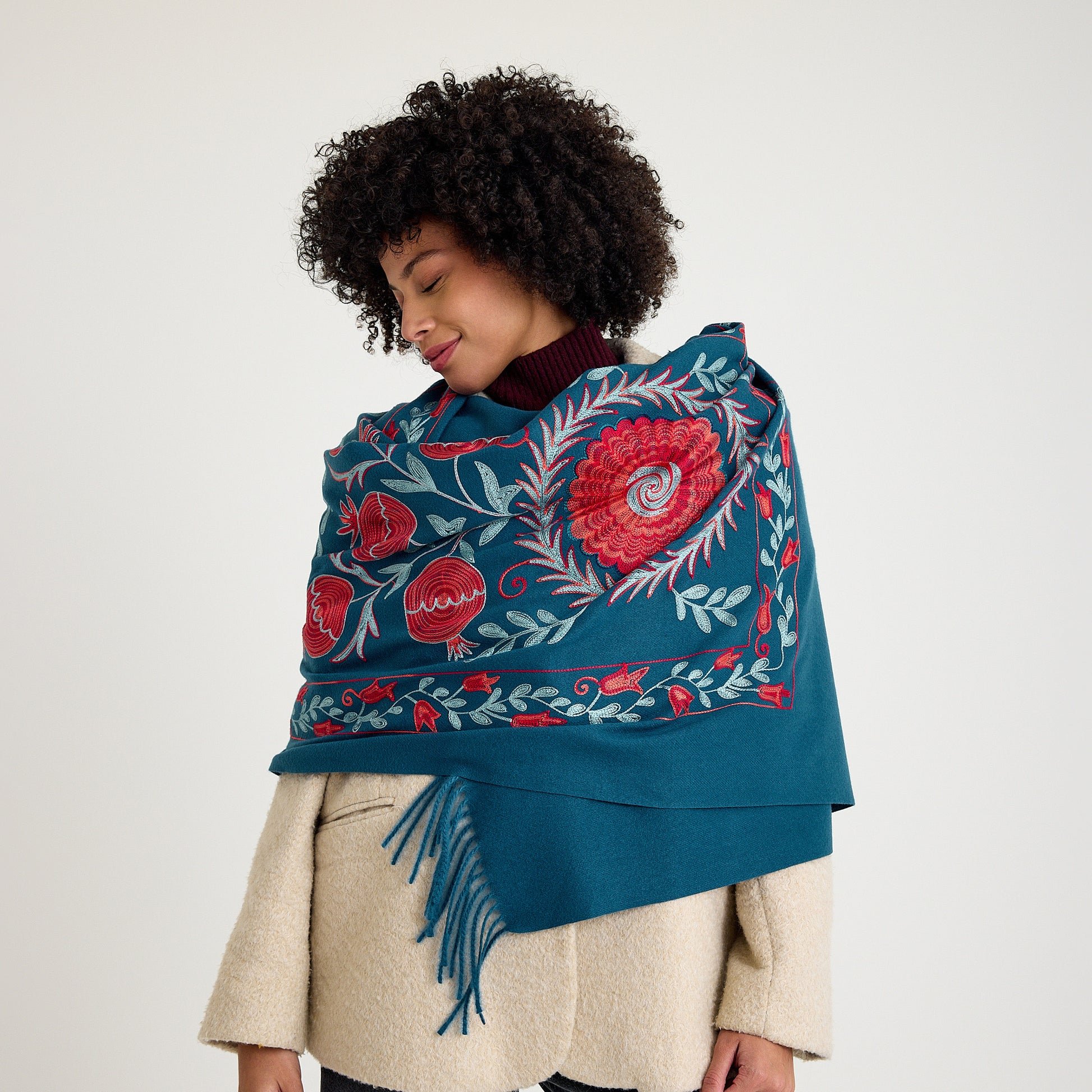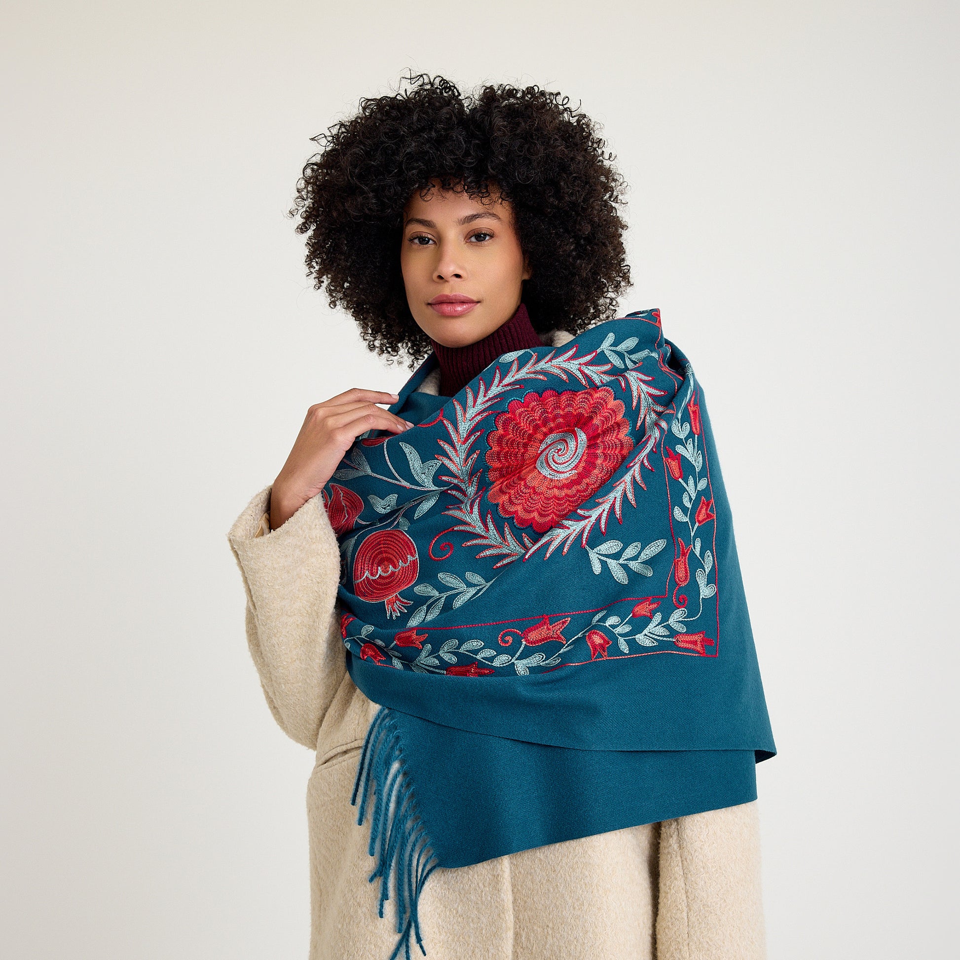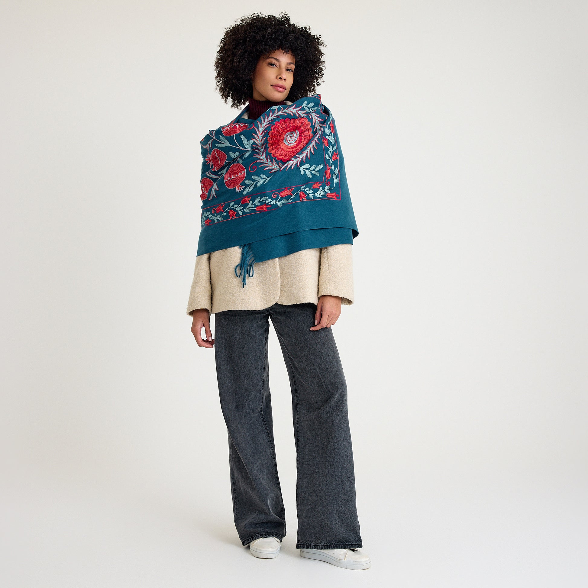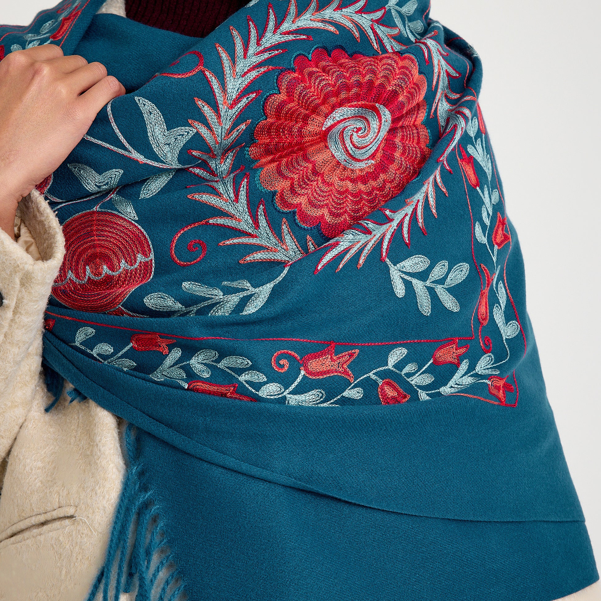 El Işlemesi Ipek Kaşmir Şal – Bereket Mavi
