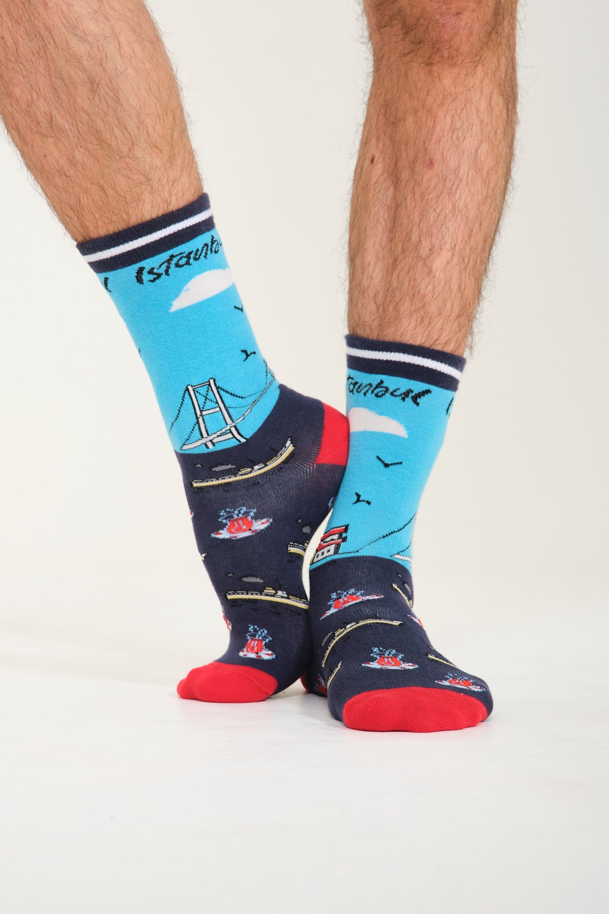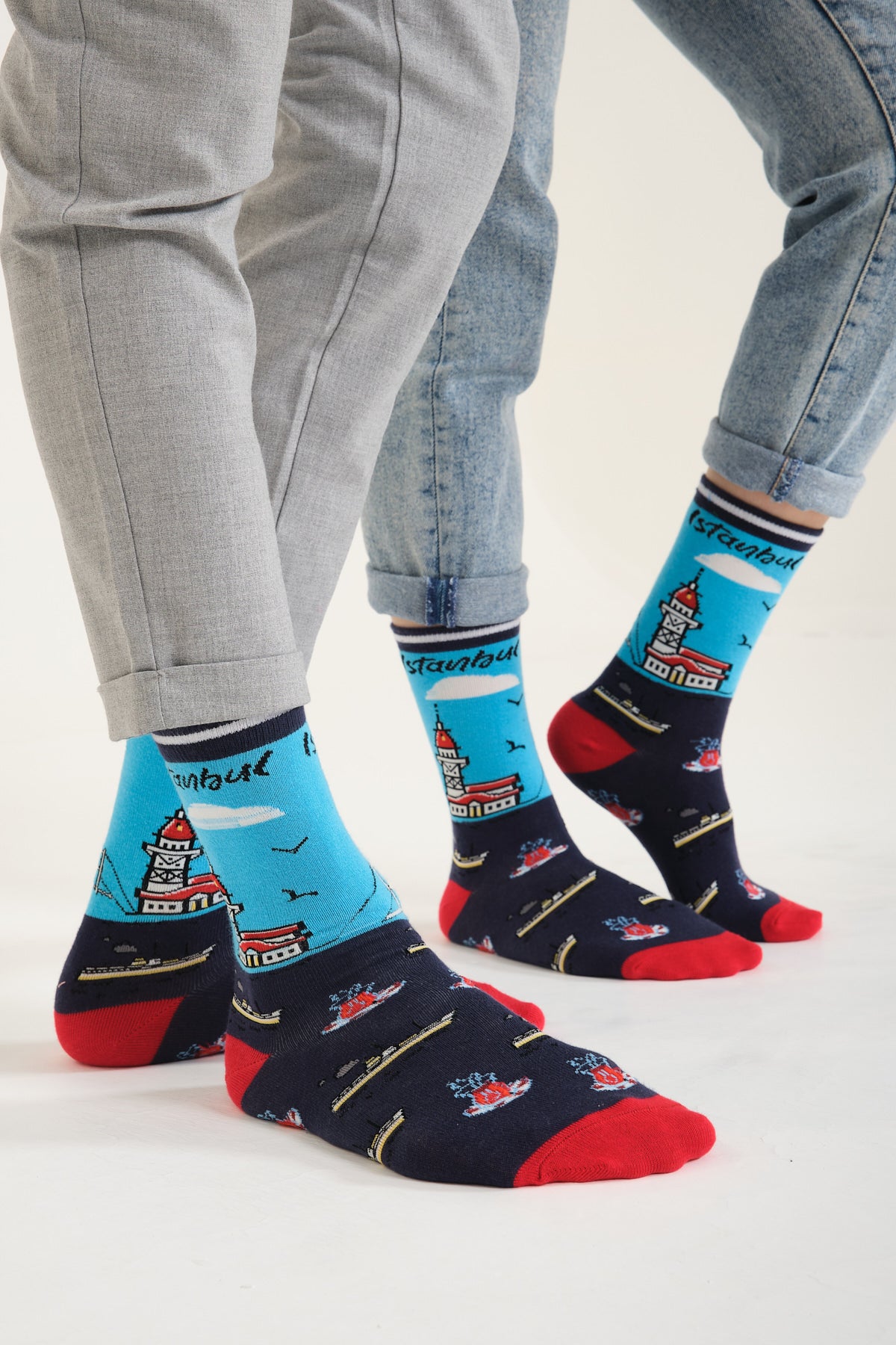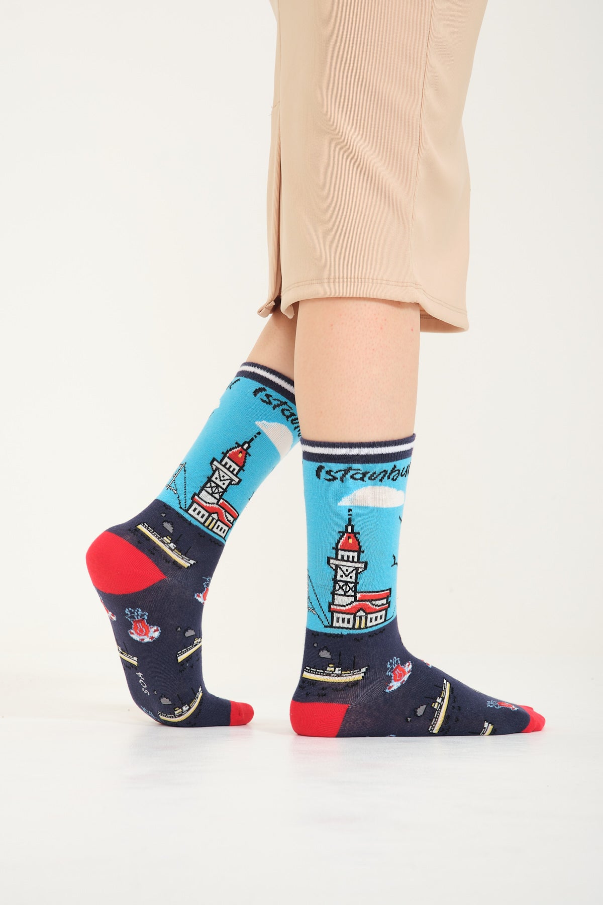 İstanbul Vapur Desenli Renkli Çorap, şehre ve deniz manzarasına duyulan sevgiyi yansıtmak isteyenler için ideal bir tercihtir. Hem günlük giyimde hem de özel günlerde tarzınıza benzersiz bir hikaye eklemek için bu çorapları tercih edin.