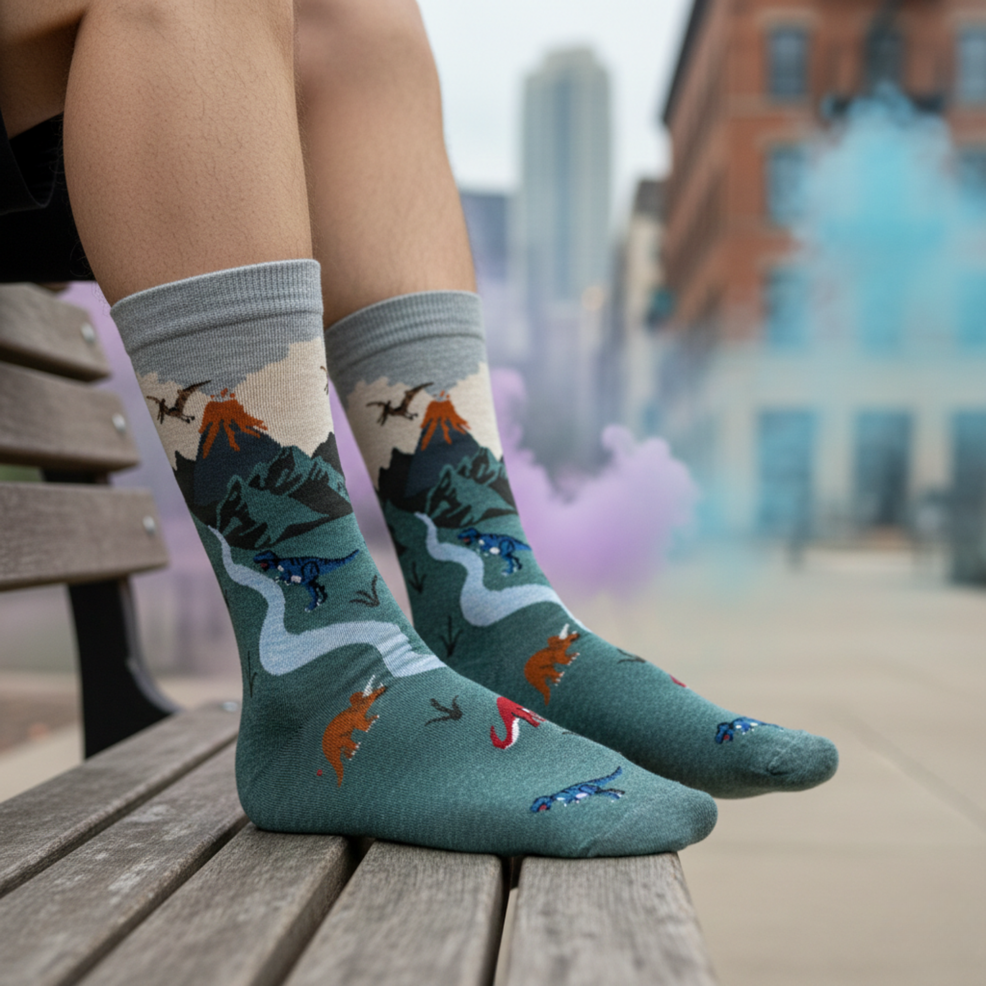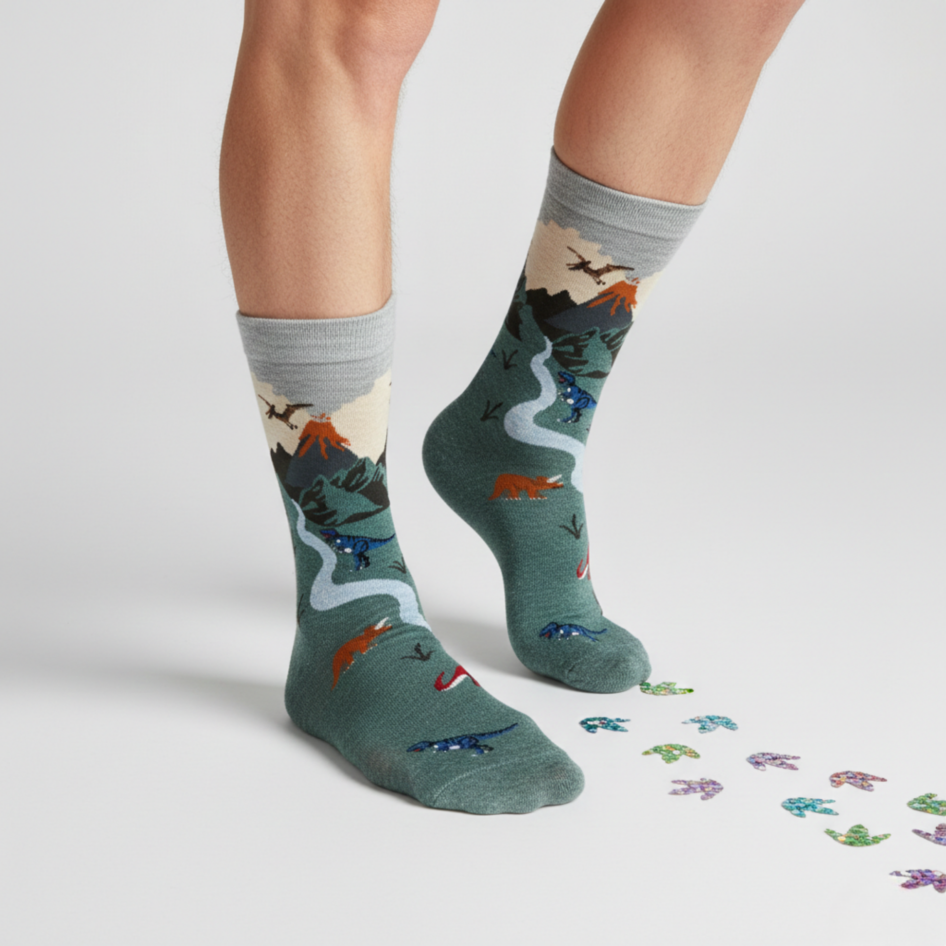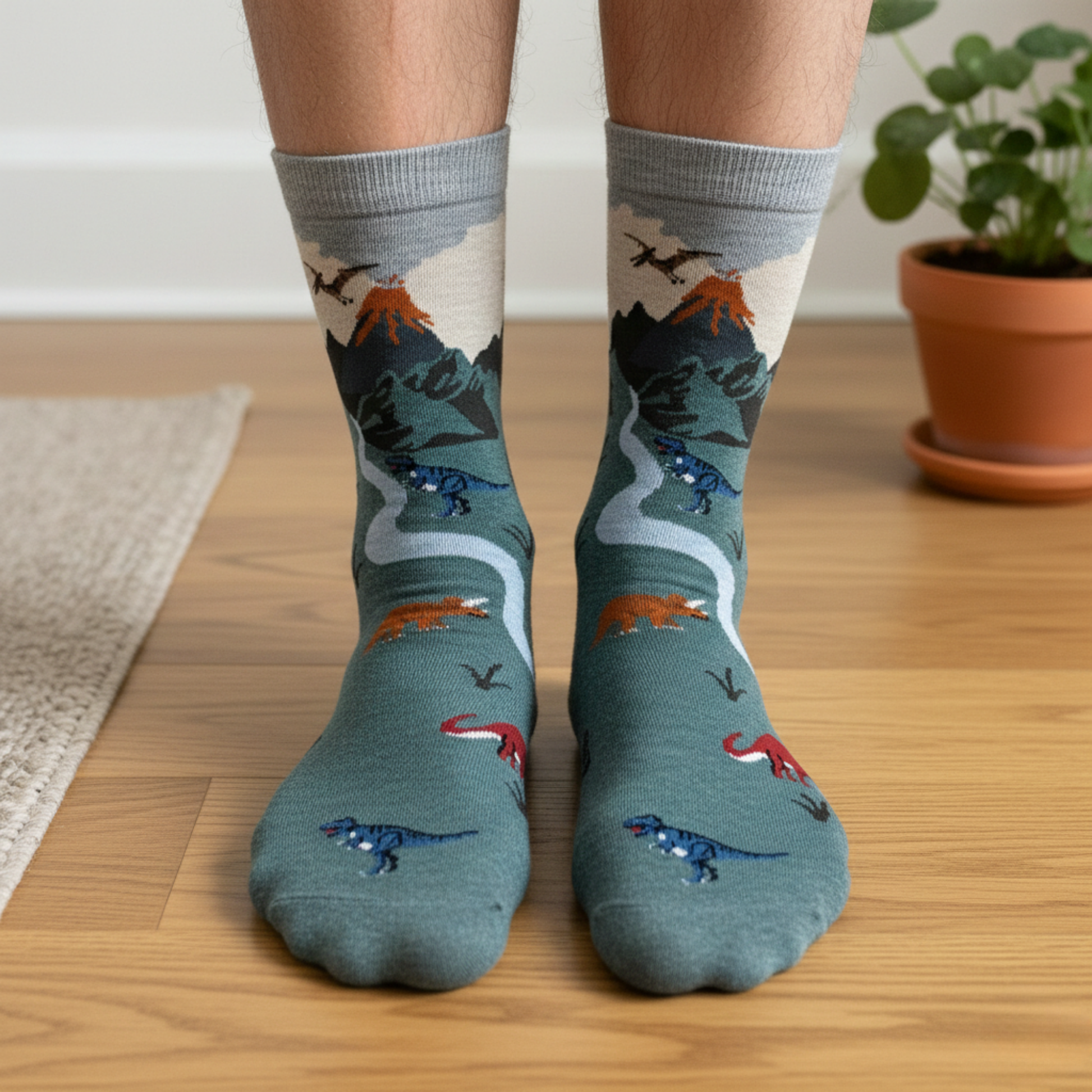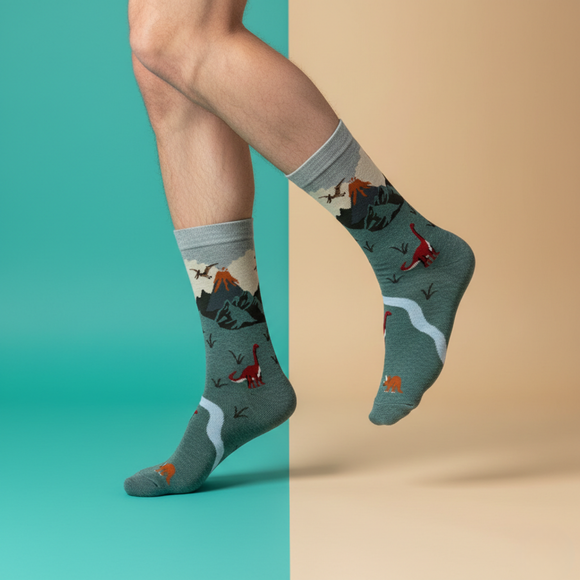 Doğanın vahşi enerjisinden ilham alan Jurassic Valley Dinozor Desenli Çorap, volkanik dağlar, nehirler ve sevimli dinozor figürleriyle dikkat çeker. Yeşil tonlarıyla güçlü ve karakterli bir görünüm sunarken, pamuklu yapısı sayesinde gün boyu konfor sağlar.