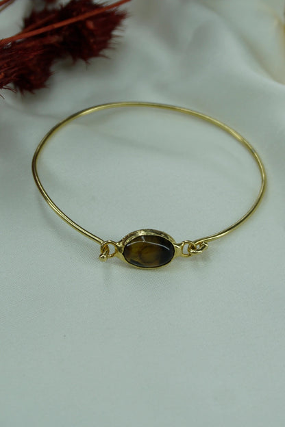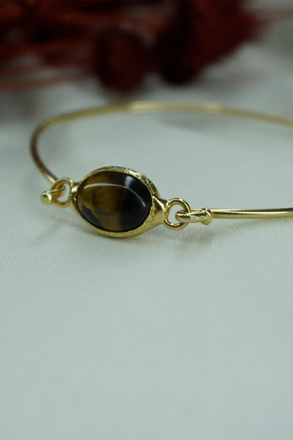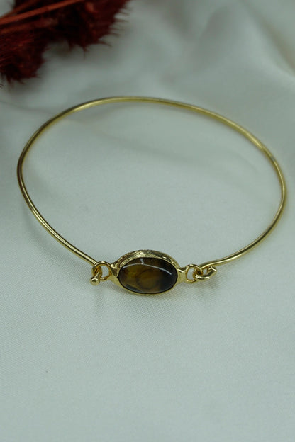 Kaplan Gözü Taşlı Altın Kaplama Tekli Sıvama Doğal Taş Kelepçe Bileklik