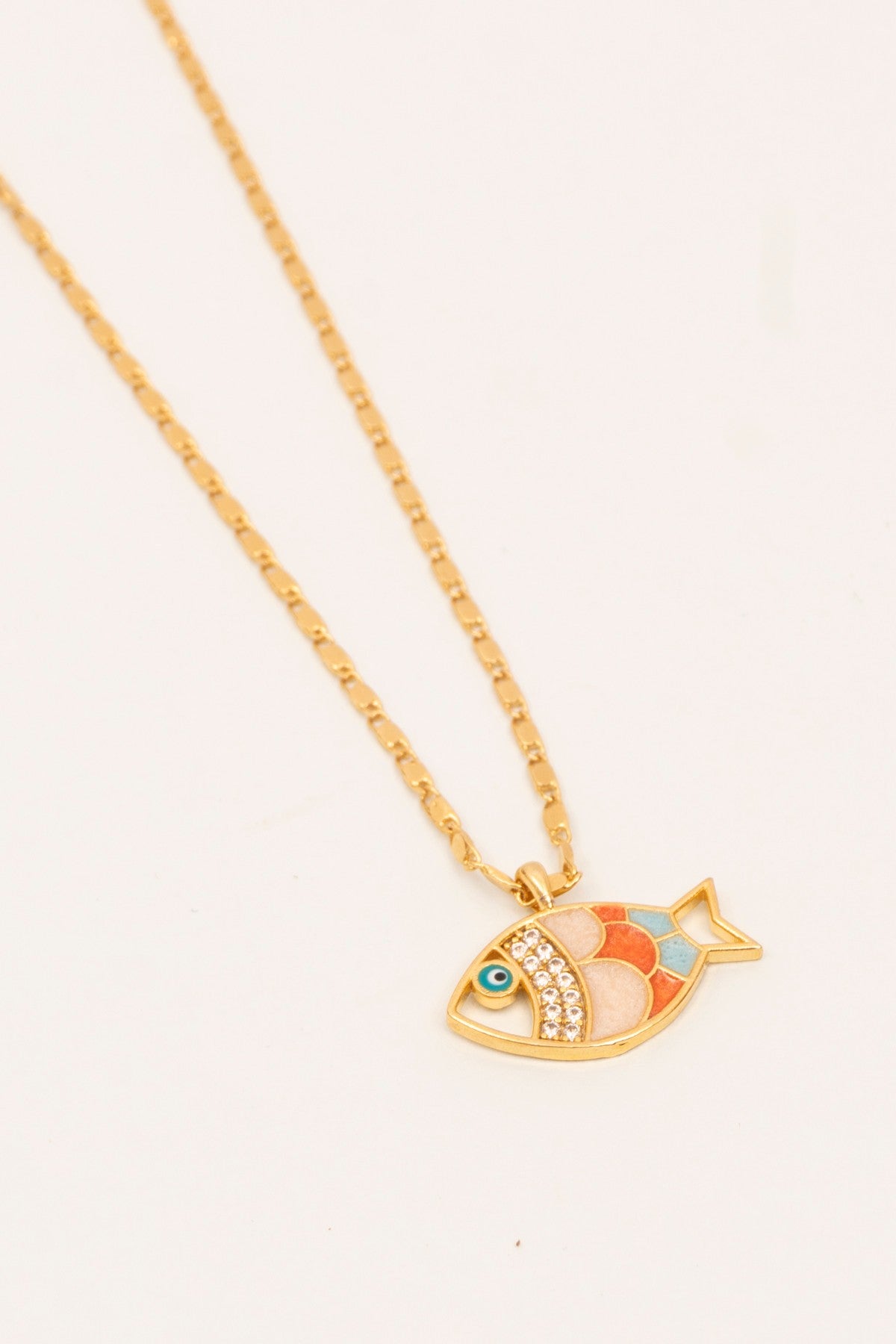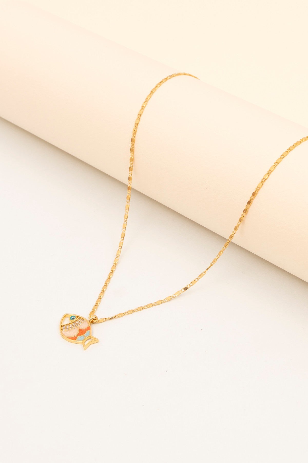 Lucky Fish' Altın Kaplama Kolye-Mercan