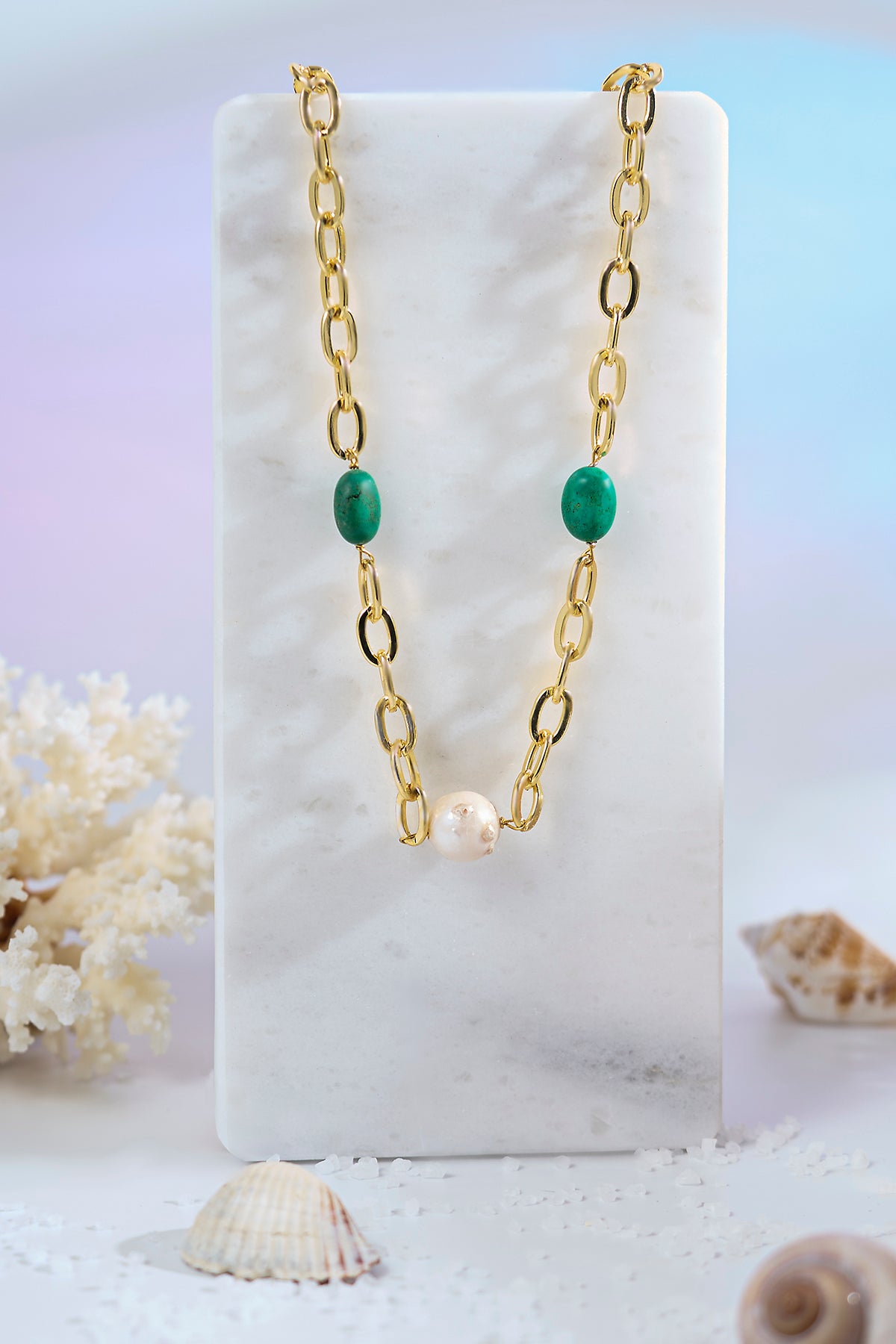 Sadeliğin gücünü hayatınıza taşıyacak tasarımlardan oluşan Pearllious' koleksiyonumuzun Maxi Link Turkuaz Barok İnci Tasarım Kolye modelimiz ile incinin zarafetini turkuazın derinliği ile birleştirerek her anınızda yanınızda taşıyın!