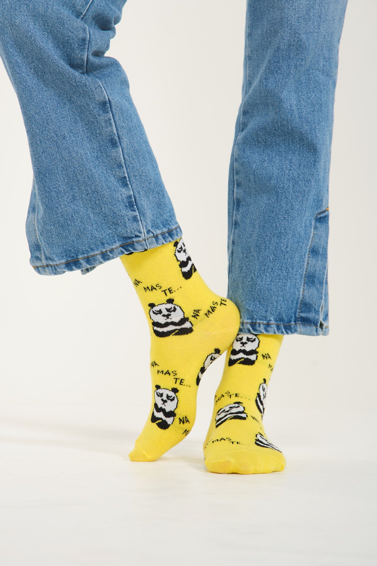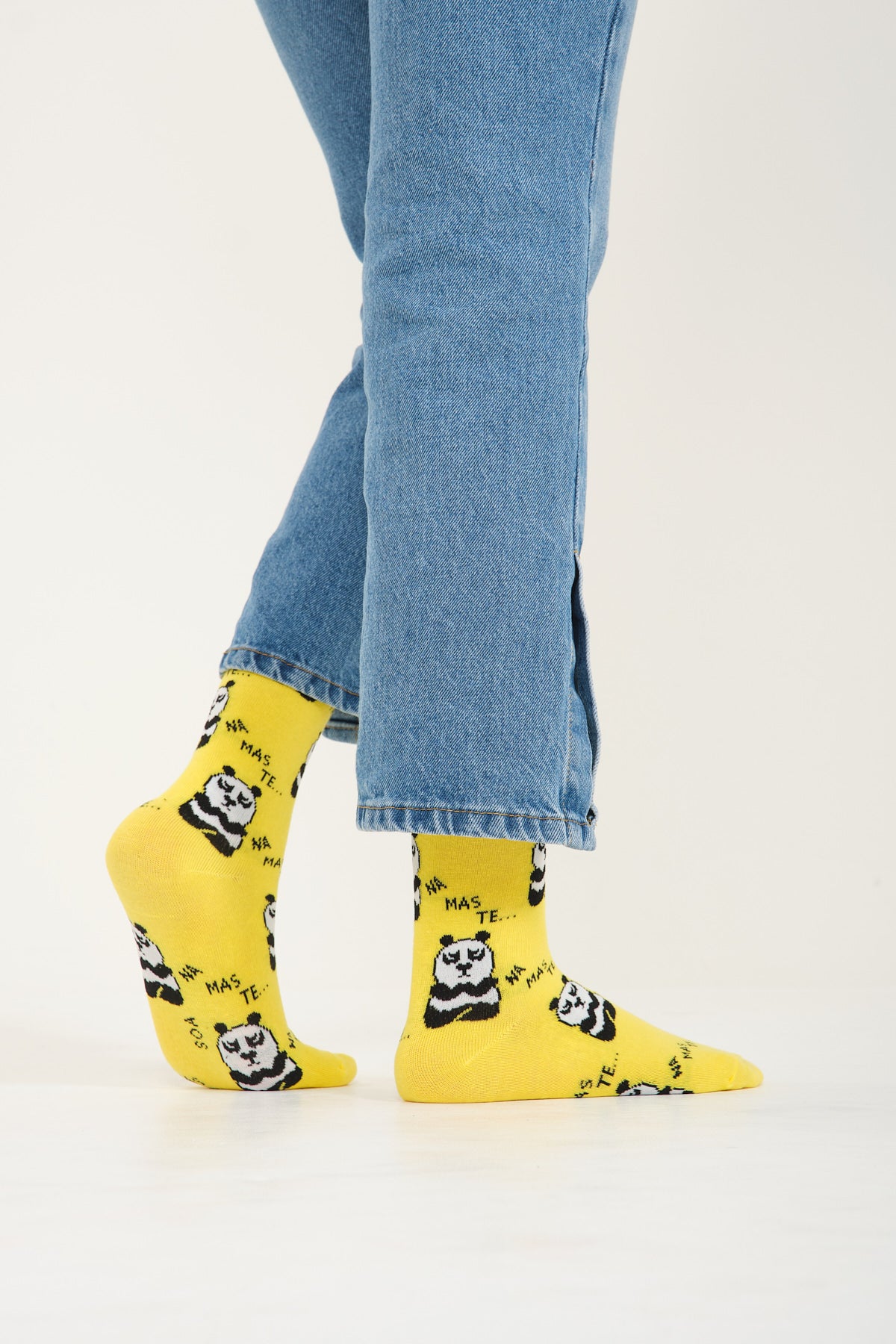 Panda desenleri, çorapları süsleyerek ortaya çıkan sonuç, sevimliliği ve dikkat çekici bir tasarımı bir araya getiriyor. Her adımda sizi pozitif enerjisiyle kucaklayan bu çoraplar, yumuşak dokularıyla ayağınıza konfor sunarken, sarı panda deseni de tarzınıza özgünlük katıyor.
