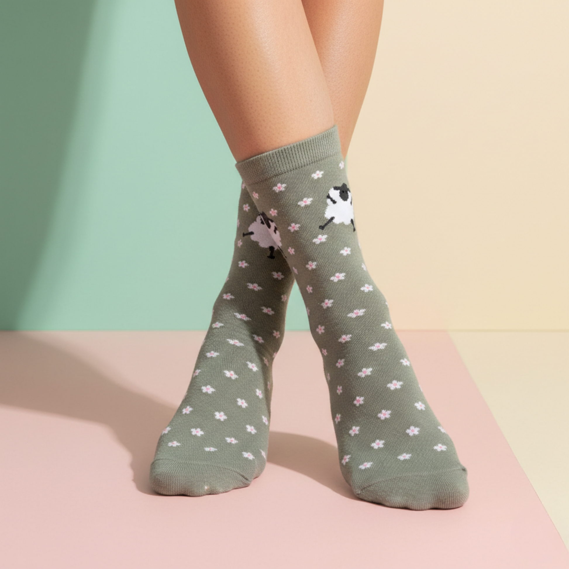 Papatya detayları ve sevimli kuzu figürüyle tasarlanan Papatyalı Kuzu Desenli Yeşil Çorap; günlük kombinlere yumuşak ve huzurlu bir dokunuş katar. Pastel yeşil zemini ve minik papatya desenleriyle sade ama karakterli bir görünüm sunar. Pamuklu ve nefes alabilen yapısı sayesinde gün boyu konfor sağlar.