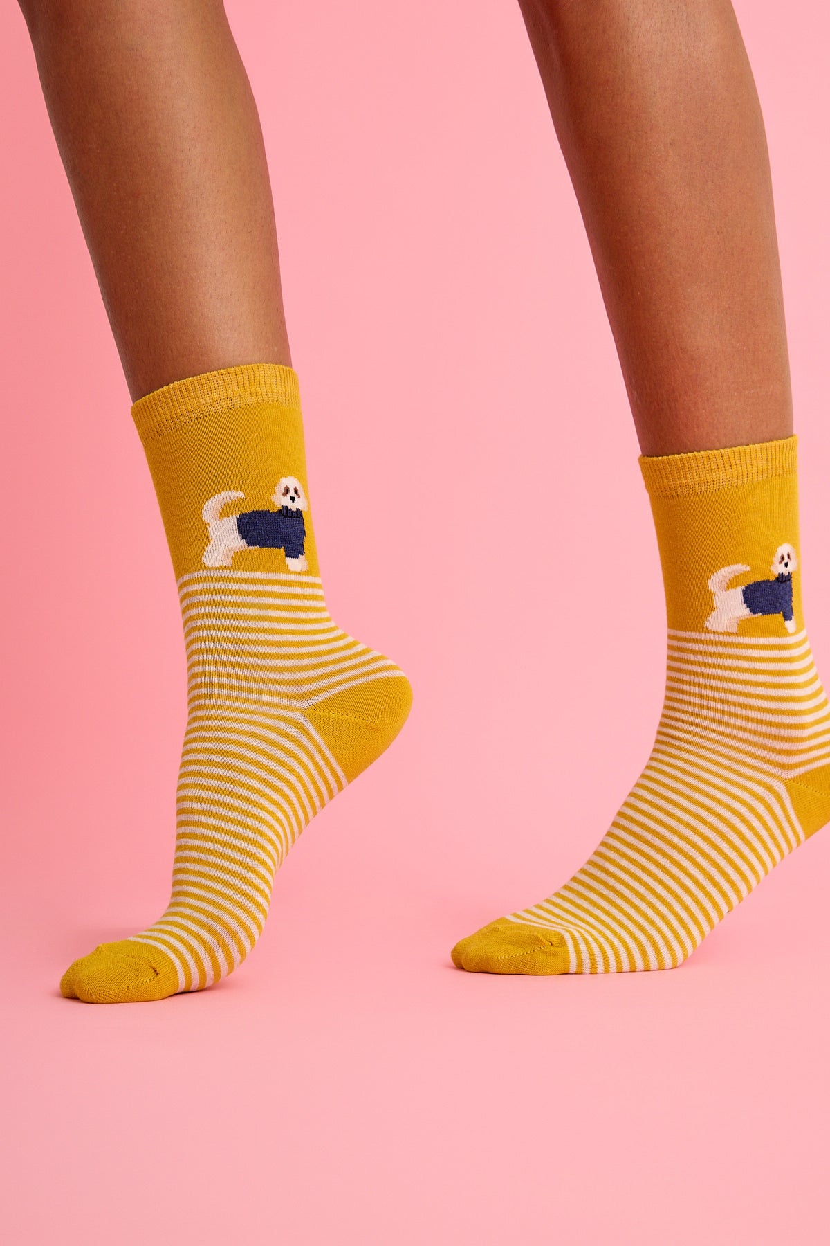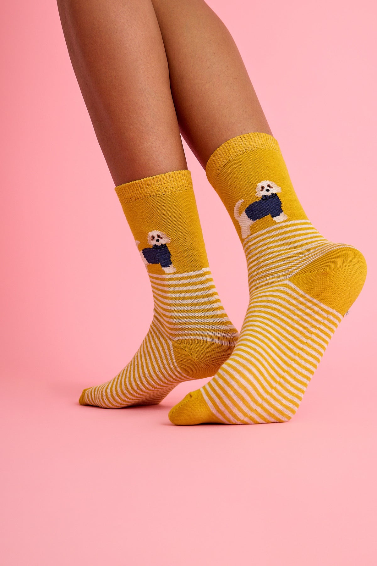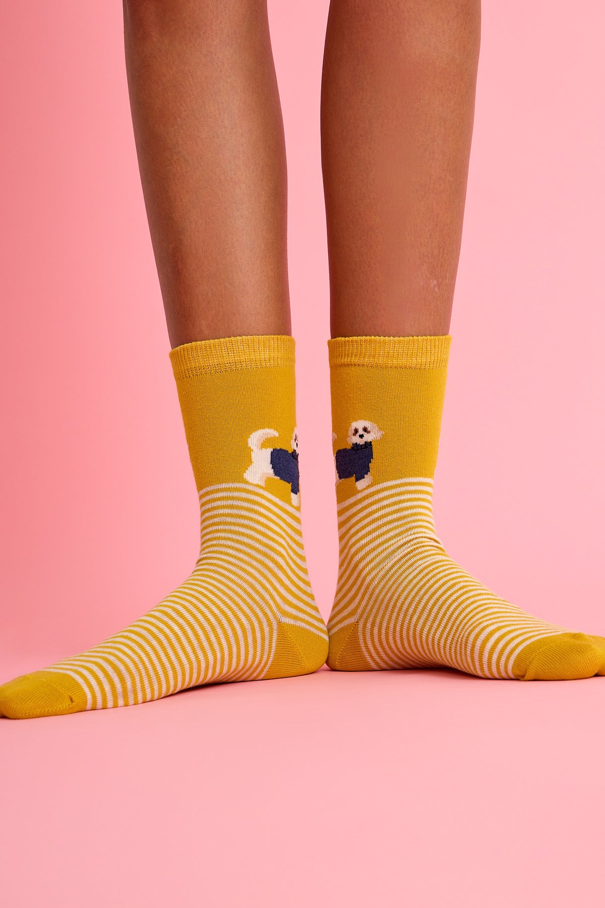 Sevimli Köpek ve Çizgili Sarı Çorap