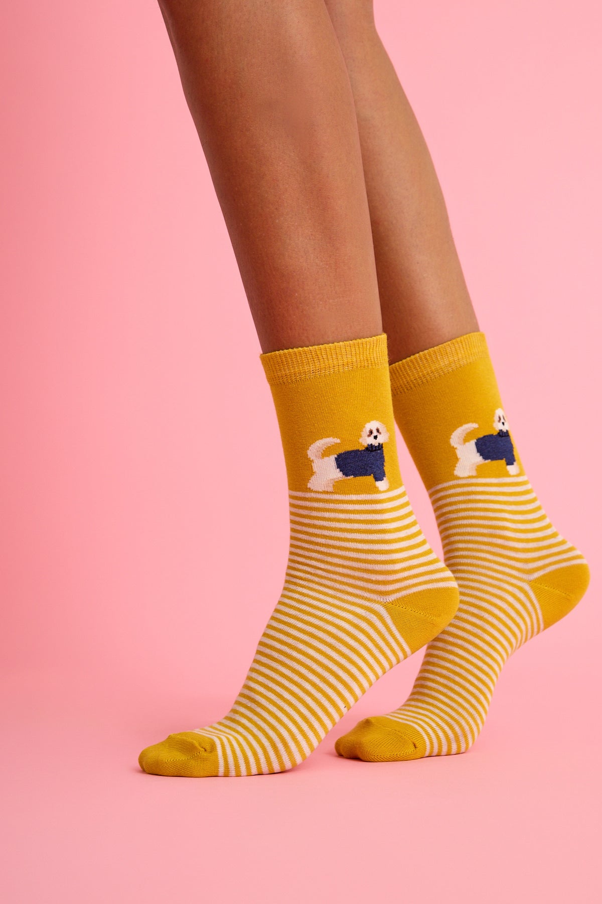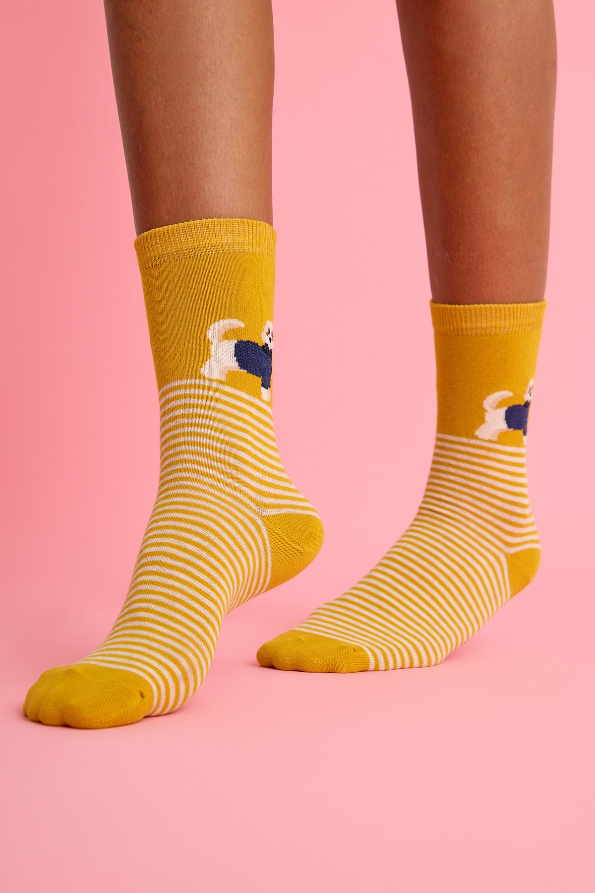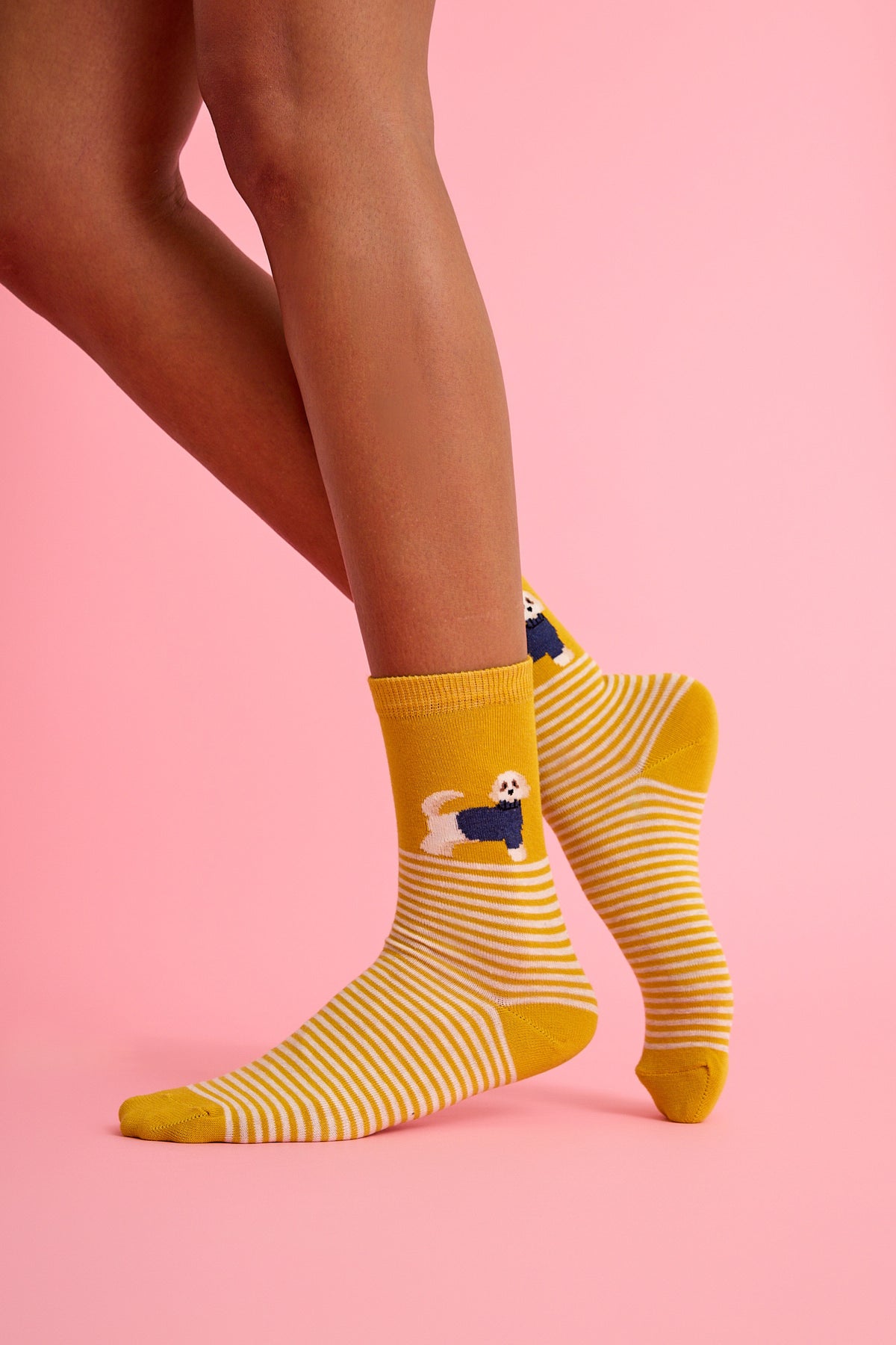 Sevimli Köpek ve Çizgili Sarı Çorap