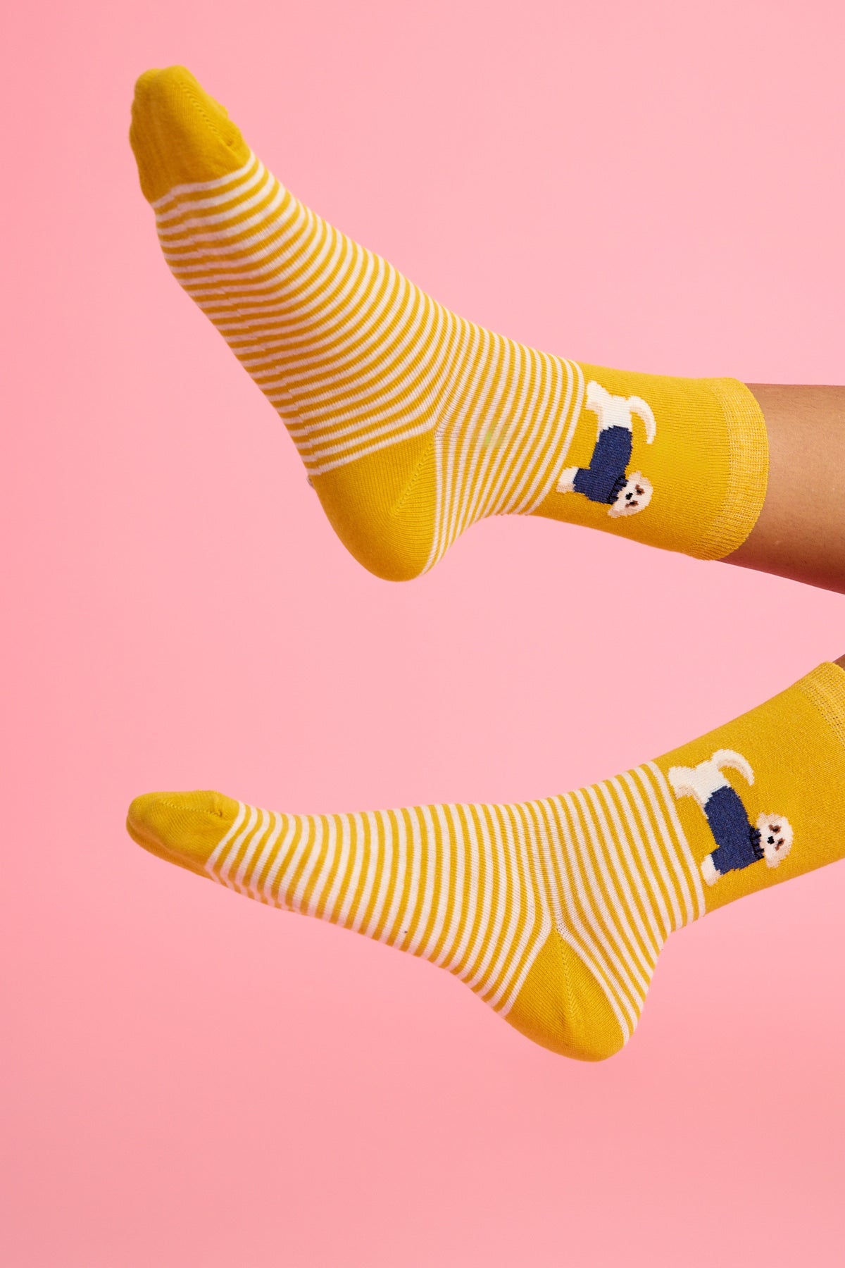 Günlük stilinize tatlı ve enerjik bir detay eklemek için Sevimli Köpek ve Çizgili Sarı Çorap tam size göre! Hemen sepetinize ekleyerek hem şıklığı hem de rahatlığı keşfedin.