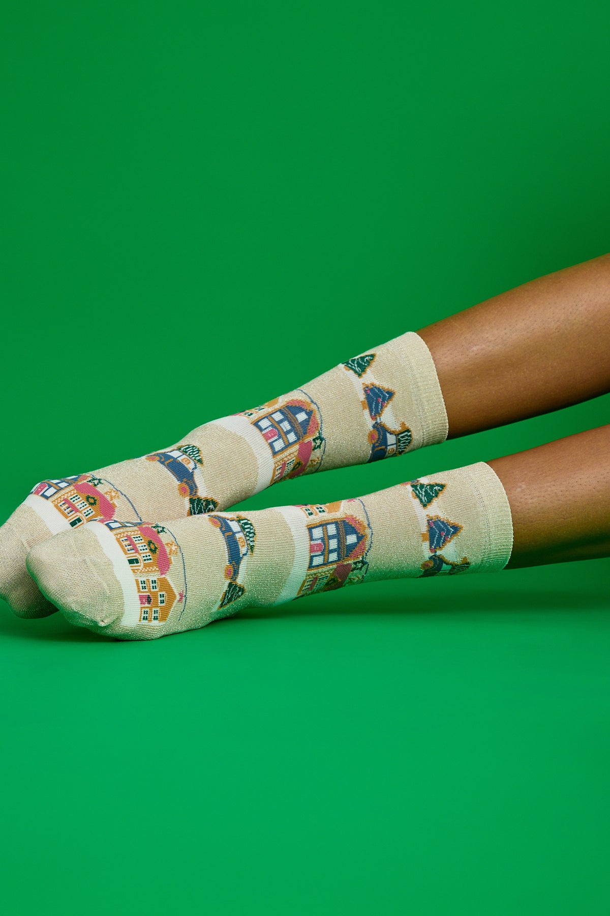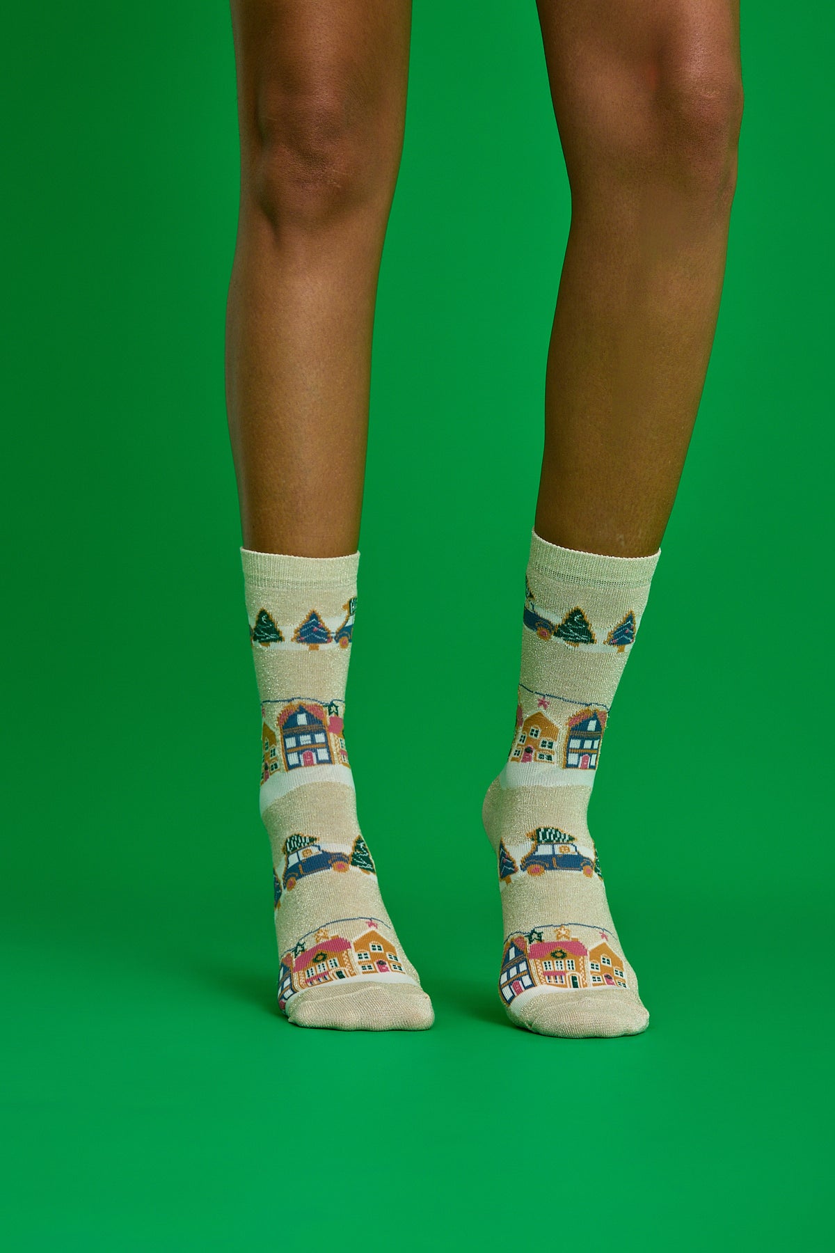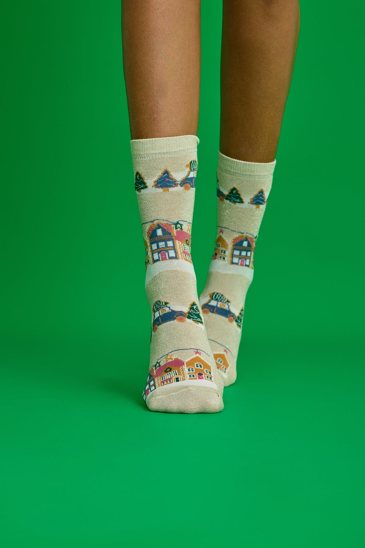 Simli Evler Yeni Yıl Desenli Renkli Çorap