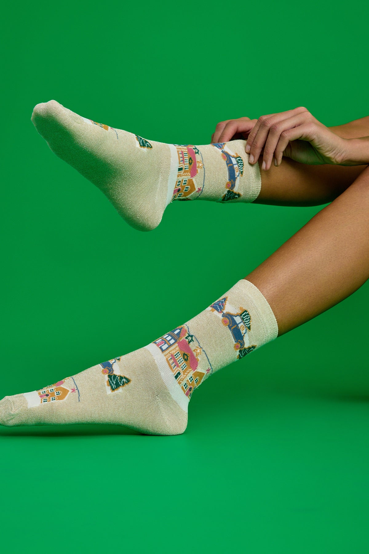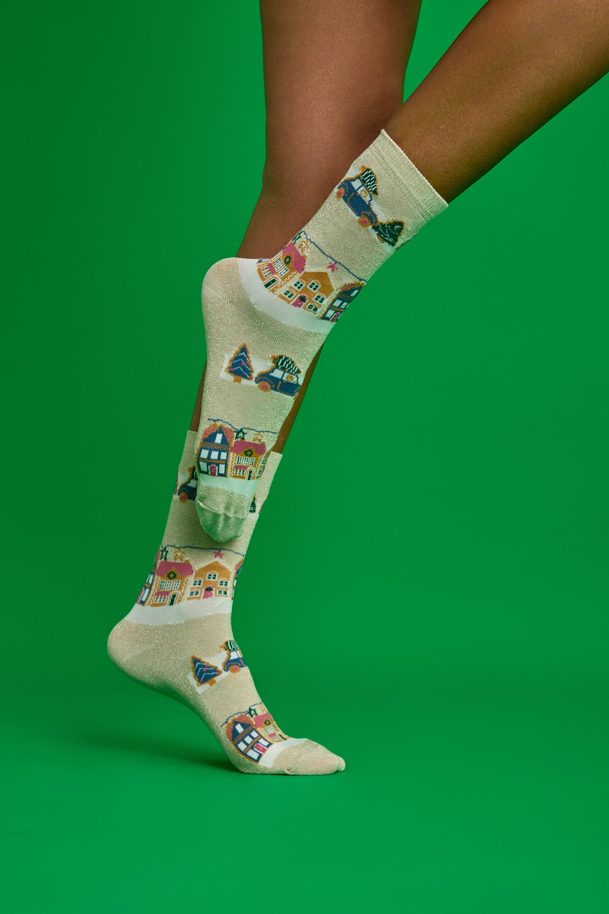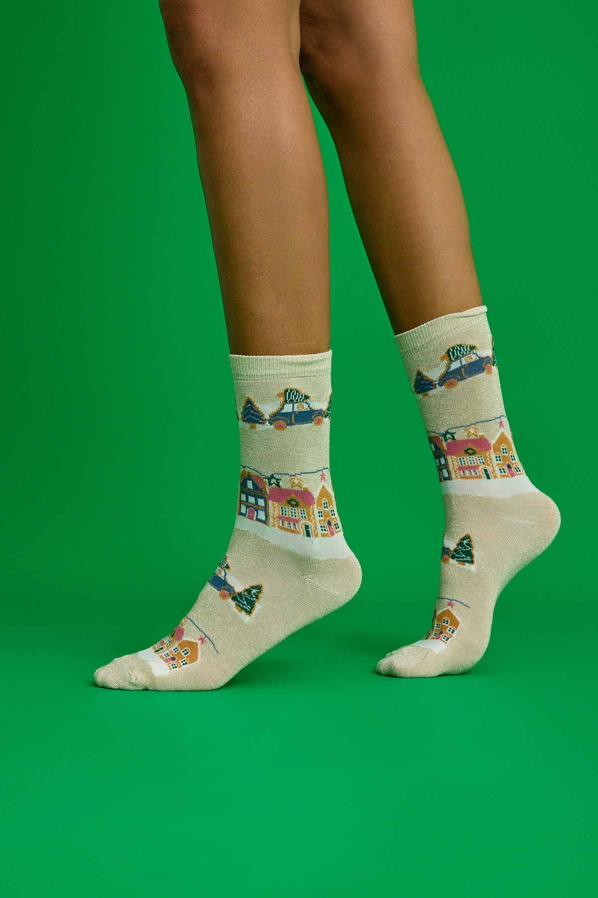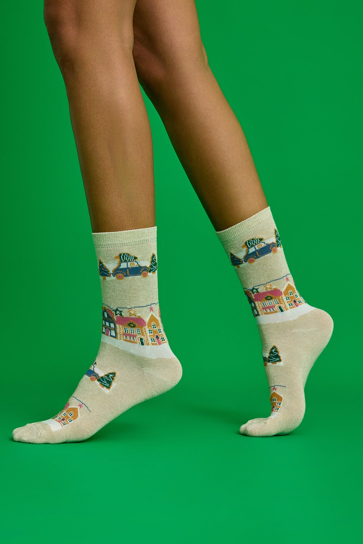 Simli Evler Yeni Yıl Desenli Renkli Çorap