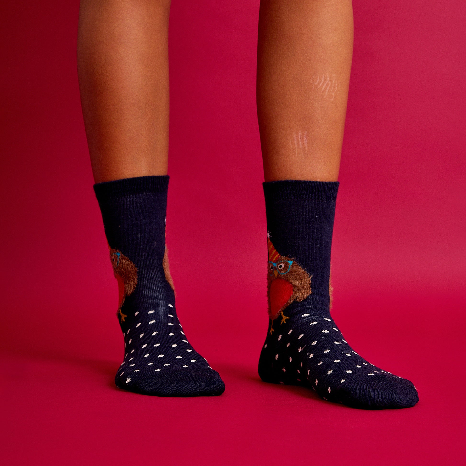 Sevimliliği ve eğlenceyi bir araya getiren Tüylü Baykuş Desenli Renkli Çorap, tüylü dokulu parti şapkalı baykuş motifi ve minik puantiye detaylarıyla her adımda neşeyi hissettiriyor. Yumuşak pamuklu yapısı sayesinde gün boyu konfor sunarken, esnek formuyla ayağı nazikçe sarar.