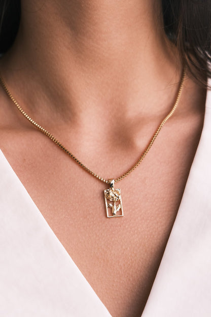 Vintage Çerçeve Gül Altın Kaplama Kolye